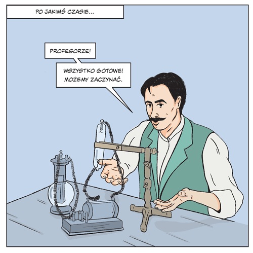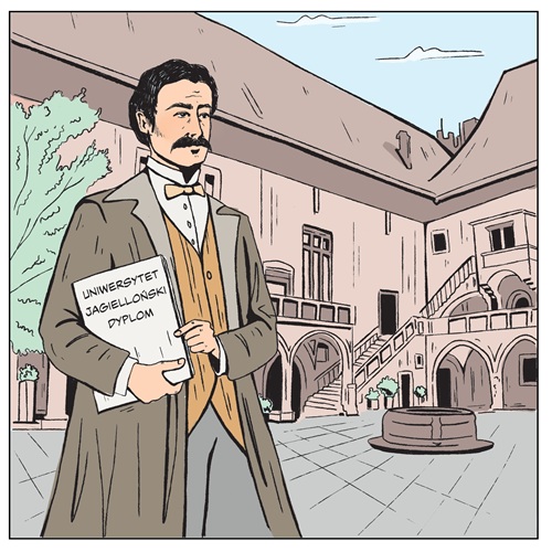 Ilustracja: "Karol Olszewski. historia człowieka, który skroplił powietrze" dr K. Dudek Różycki, K. Knap, M. Płotek, opracowanie graficzne: G. Szonowska, J. Fochtman