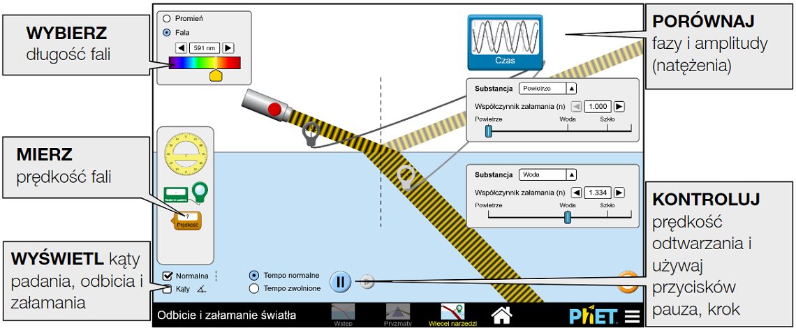 Instrukcje dla nauczyciela do symulacji PhET - Odbicie i załamanie światła