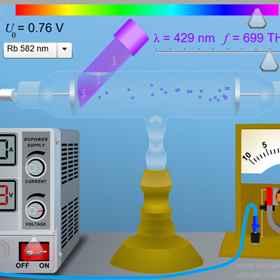 Symulacja Efekt fotoelektryczny przedstawia wirtualne odwzorowanie fotoelektrycznego eksperymentu Millikana.
