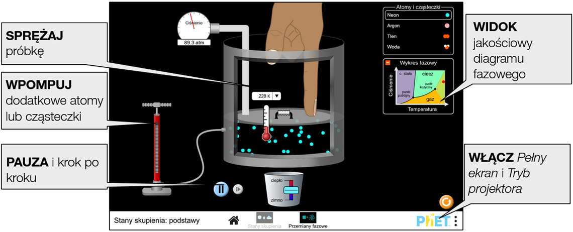 Zobacz wszystkie opublikowane na stronach PhET aktywności dla Stany skupienia materii - podstawy tutaj (dostęp do materiałów wymaga zalogowania).
